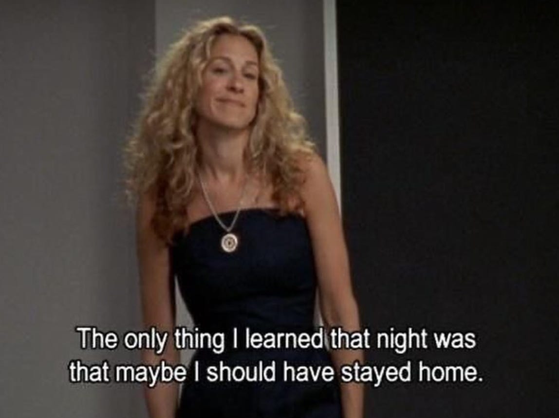 “Coulda, woulda, shoulda,” so says Samantha Jones in the Sex and the City episode of the same name (featuring an iconic guest turn from Lucy Liu playing herself). Even writing this edition, I’ve used the phrase ‘should have’ in my look back upon the past. I don’t think the feeling of regret is ever a totally avoidable one — I definitely reflect on things I’ve done and sometimes think, “Hmm, that was not my best work.” But I do think that every decision we make has importance in shaping who we are, and I certainly don’t feel regretful about that.